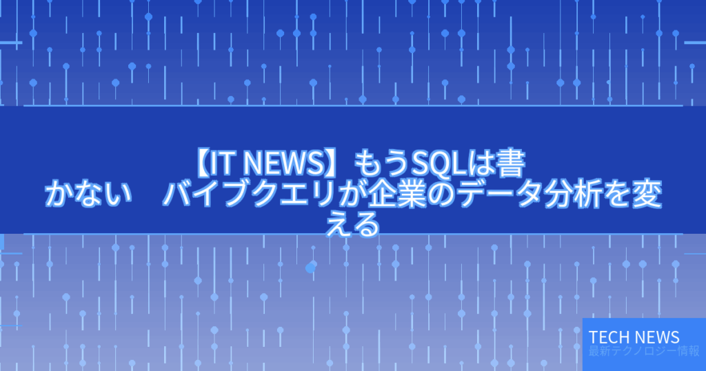 【IT NEWS】もうSQLは書かない バイブクエリが企業のデータ分析を変える