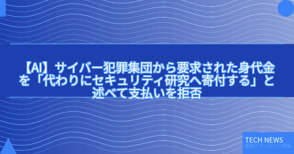 【AI】サイバー犯罪集団から要求された身代金を「代わりにセキュリティ研究へ寄付する」と述べて支払いを拒否