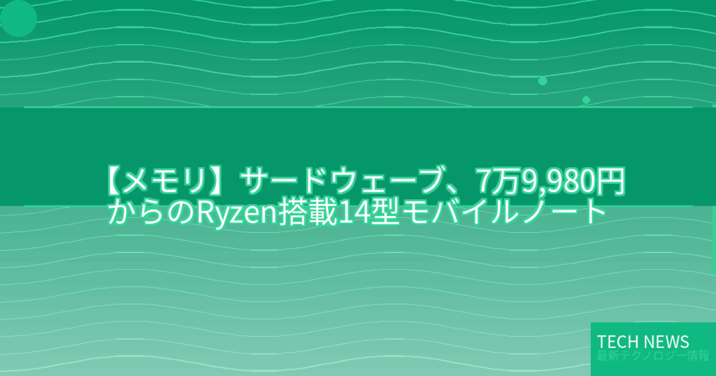 【メモリ】サードウェーブ、7万9,980円からのRyzen搭載14型モバイルノート