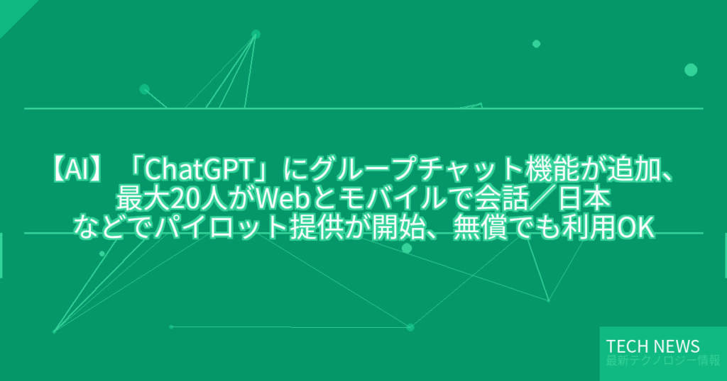 【AI】「ChatGPT」にグループチャット機能が追加、最大20人がWebとモバイルで会話/日本などでパイロット提供が開始、無償でも利用OK