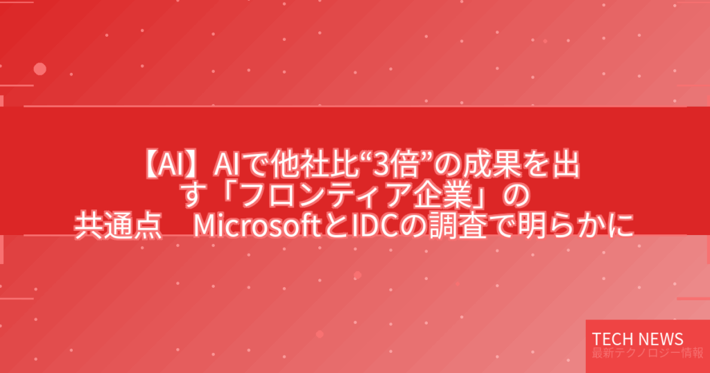 【AI】AIで他社比“3倍”の成果を出す「フロンティア企業」の共通点 MicrosoftとIDCの調査で明らかに