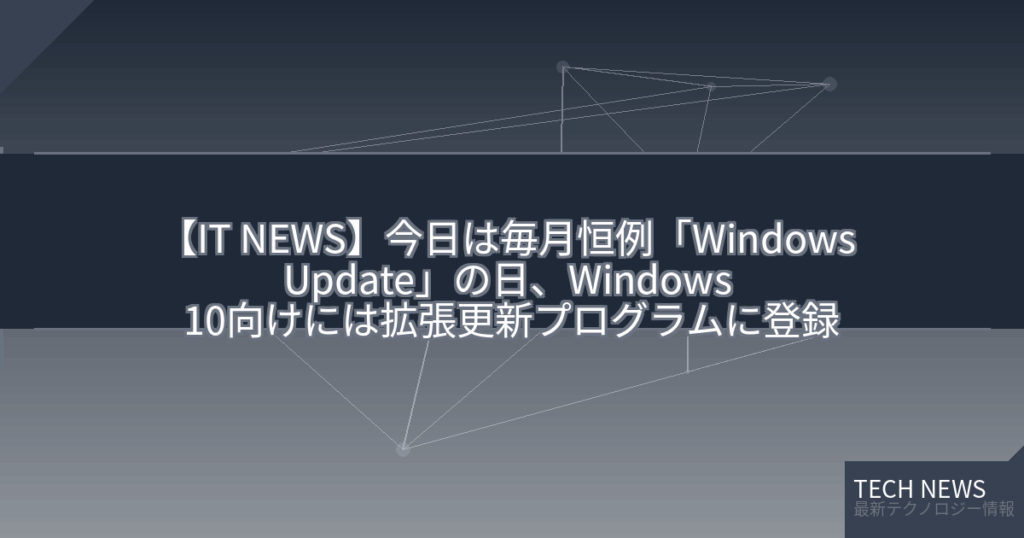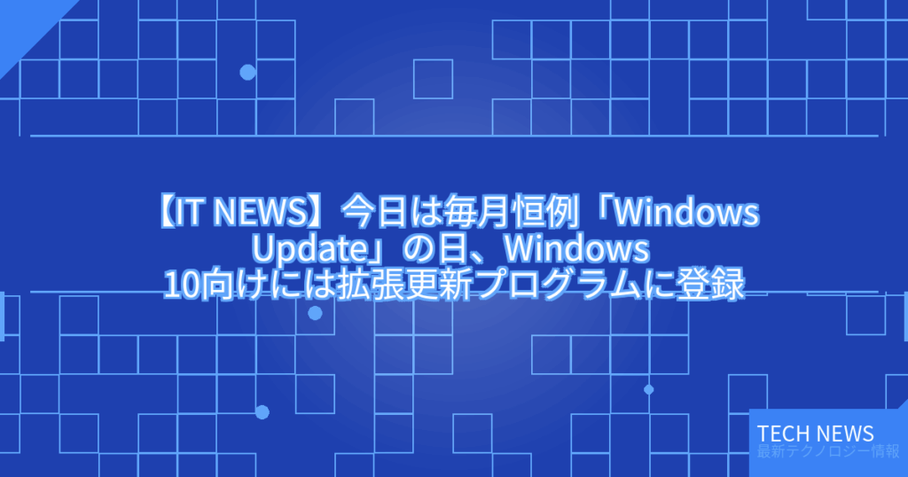 【IT NEWS】今日は毎月恒例「Windows Update」の日、Windows 10向けには拡張更新プログラムに登録できないバグの修正パッチが配布中