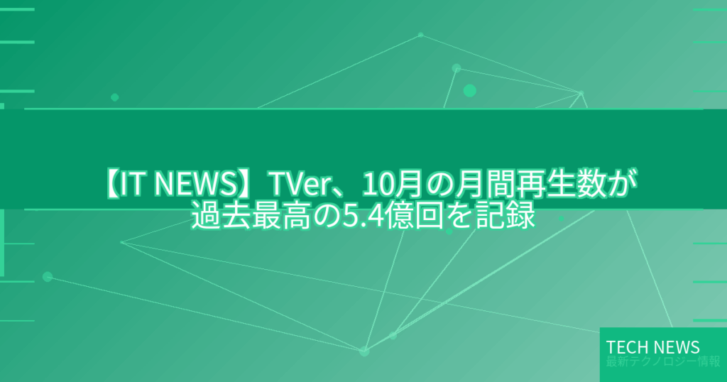【IT NEWS】TVer、10月の月間再生数が過去最高の5.4億回を記録