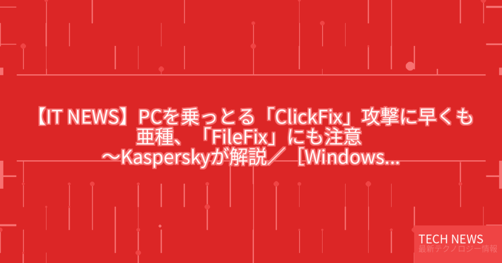 【IT NEWS】PCを乗っとる「ClickFix」攻撃に早くも亜種、「FileFix」にも注意 ~Kasperskyが解説/[Windows]+[R]キーを押さなきゃ大丈夫……なんて安心してると騙されるやじうまの杜