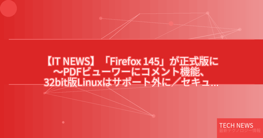 【IT NEWS】「Firefox 145」が正式版に ~PDFビューワーにコメント機能、32bit版Linuxはサポート外に/セキュリティ関連の修正は16件
