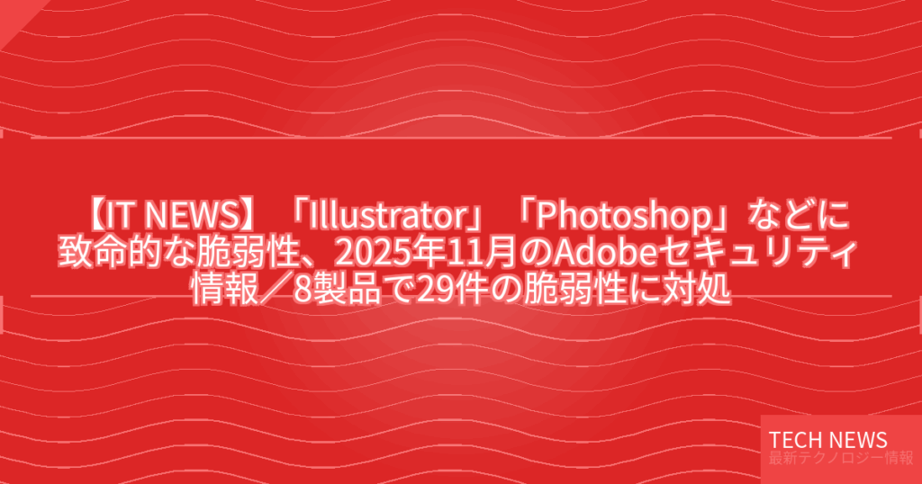 【IT NEWS】「Illustrator」「Photoshop」などに致命的な脆弱性、2025年11月のAdobeセキュリティ情報/8製品で29件の脆弱性に対処