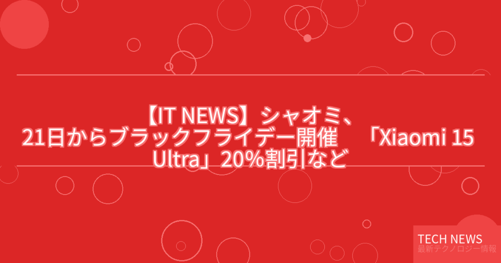 【IT NEWS】シャオミ、21日からブラックフライデー開催 「Xiaomi 15 Ultra」20%割引など