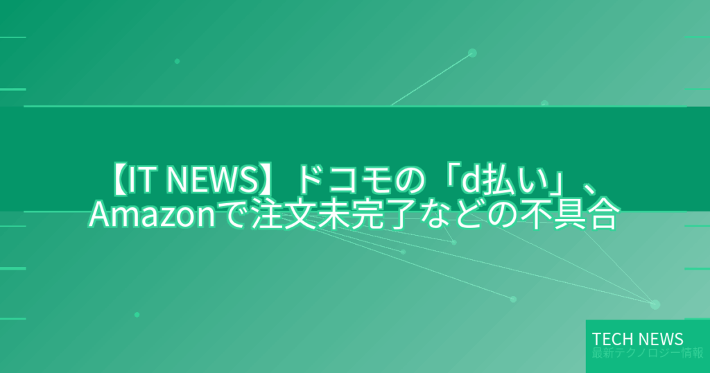 【IT NEWS】ドコモの「d払い」、Amazonで注文未完了などの不具合