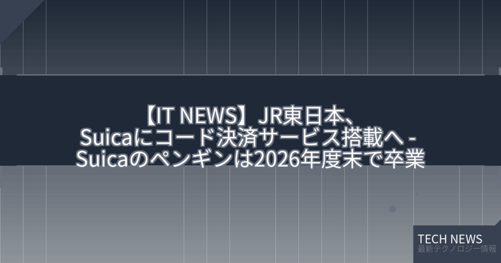 【IT NEWS】JR東日本、Suicaにコード決済サービス搭載へ – Suicaのペンギンは2026年度末で卒業