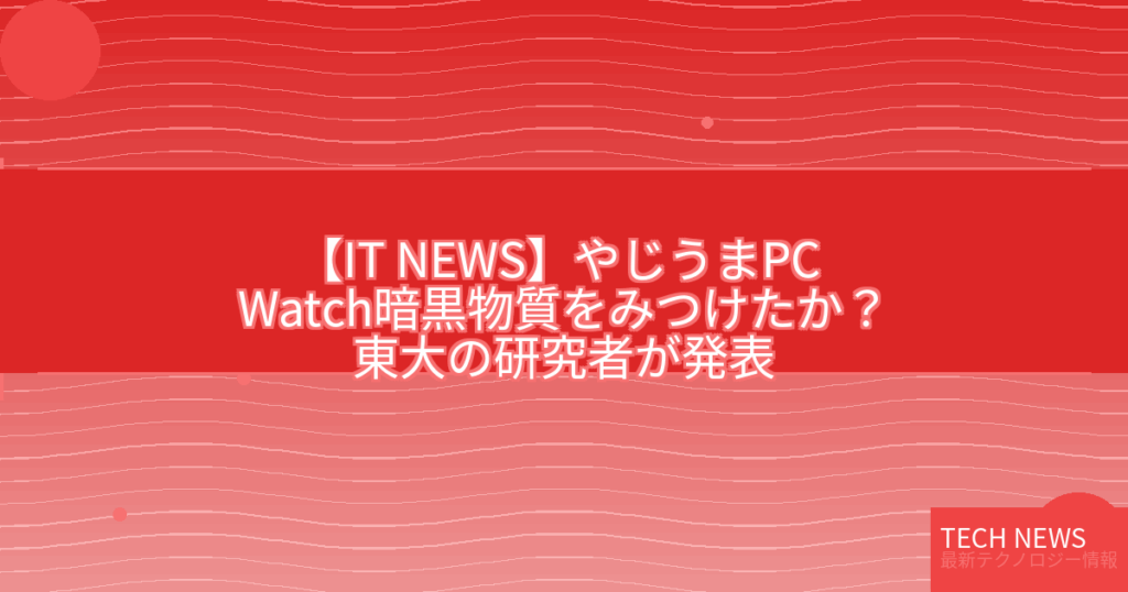 【IT NEWS】やじうまPC Watch暗黒物質をみつけたか?東大の研究者が発表