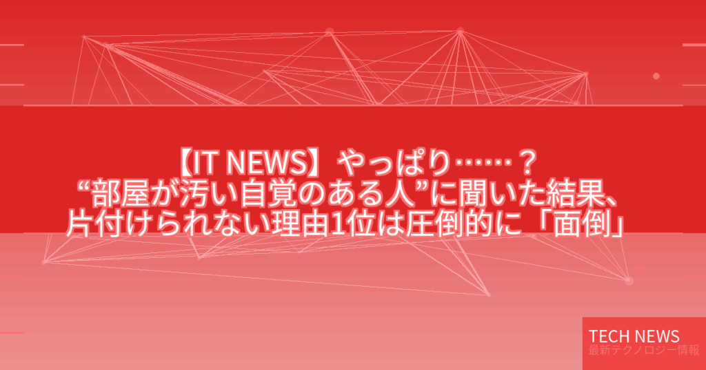 【IT NEWS】やっぱり……? “部屋が汚い自覚のある人”に聞いた結果、片付けられない理由1位は圧倒的に「面倒」