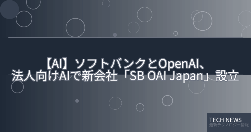 【AI】ソフトバンクとOpenAI、法人向けAIで新会社「SB OAI Japan」設立