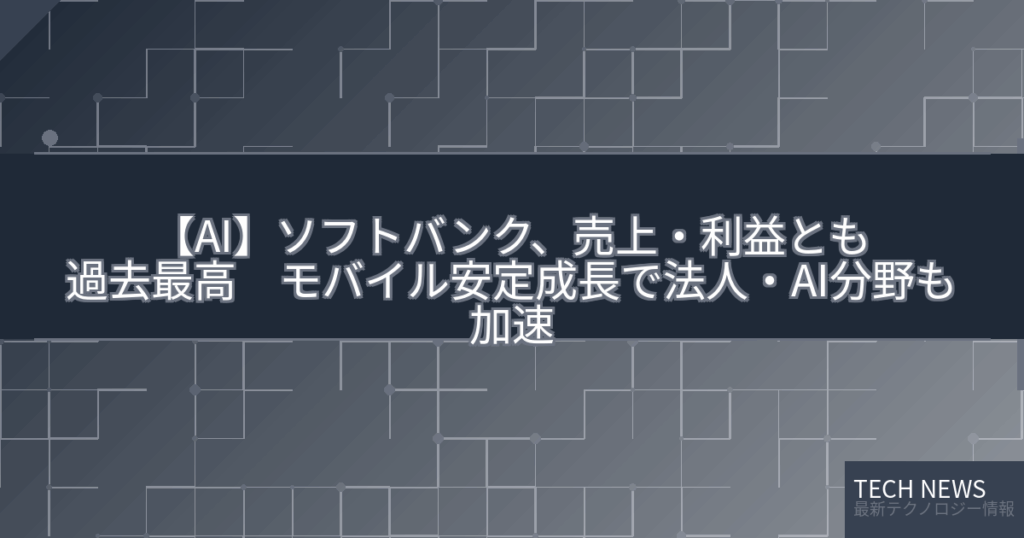 【AI】ソフトバンク、売上・利益とも過去最高 モバイル安定成長で法人・AI分野も加速
