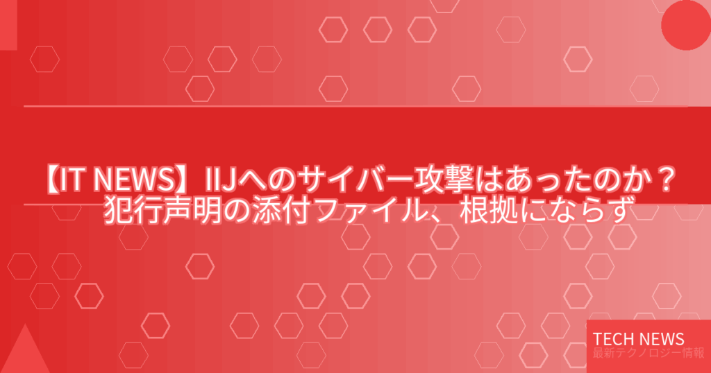 【IT NEWS】IIJへのサイバー攻撃はあったのか? 犯行声明の添付ファイル、根拠にならず