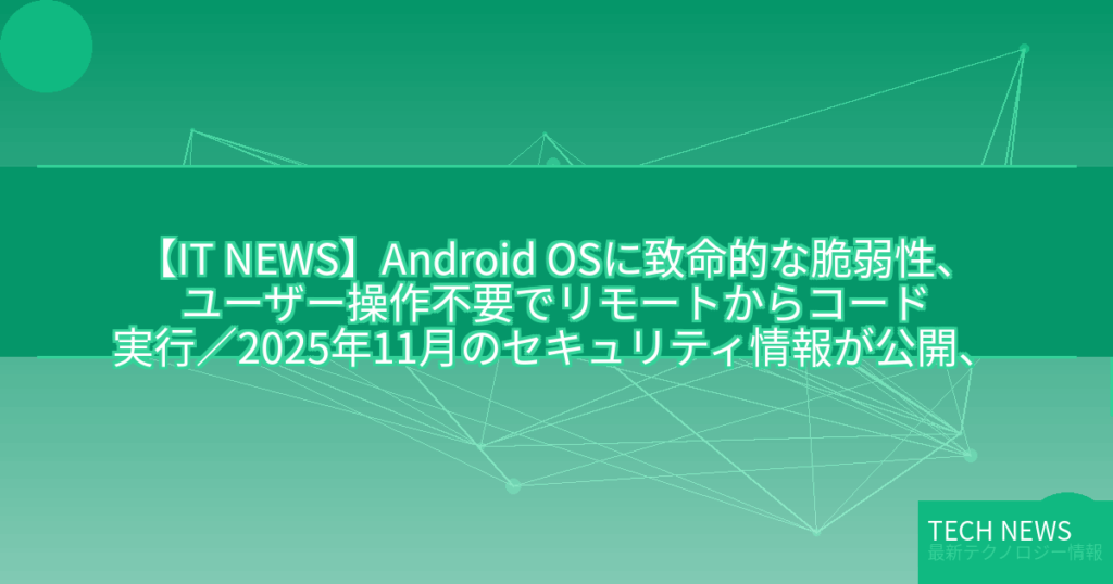 【IT NEWS】Android OSに致命的な脆弱性、ユーザー操作不要でリモートからコード実行/2025年11月のセキュリティ情報が公開、メーカーからパッチが提供され次第適用を