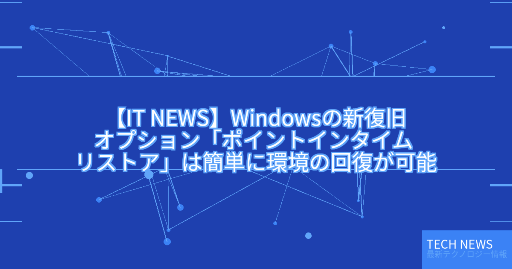 【IT NEWS】Windowsの新復旧オプション「ポイントインタイム リストア」は簡単に環境の回復が可能