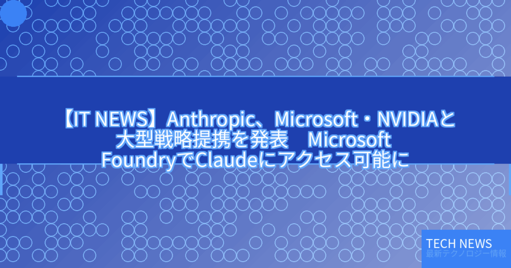 【IT NEWS】Anthropic、Microsoft・NVIDIAと大型戦略提携を発表 Microsoft FoundryでClaudeにアクセス可能に