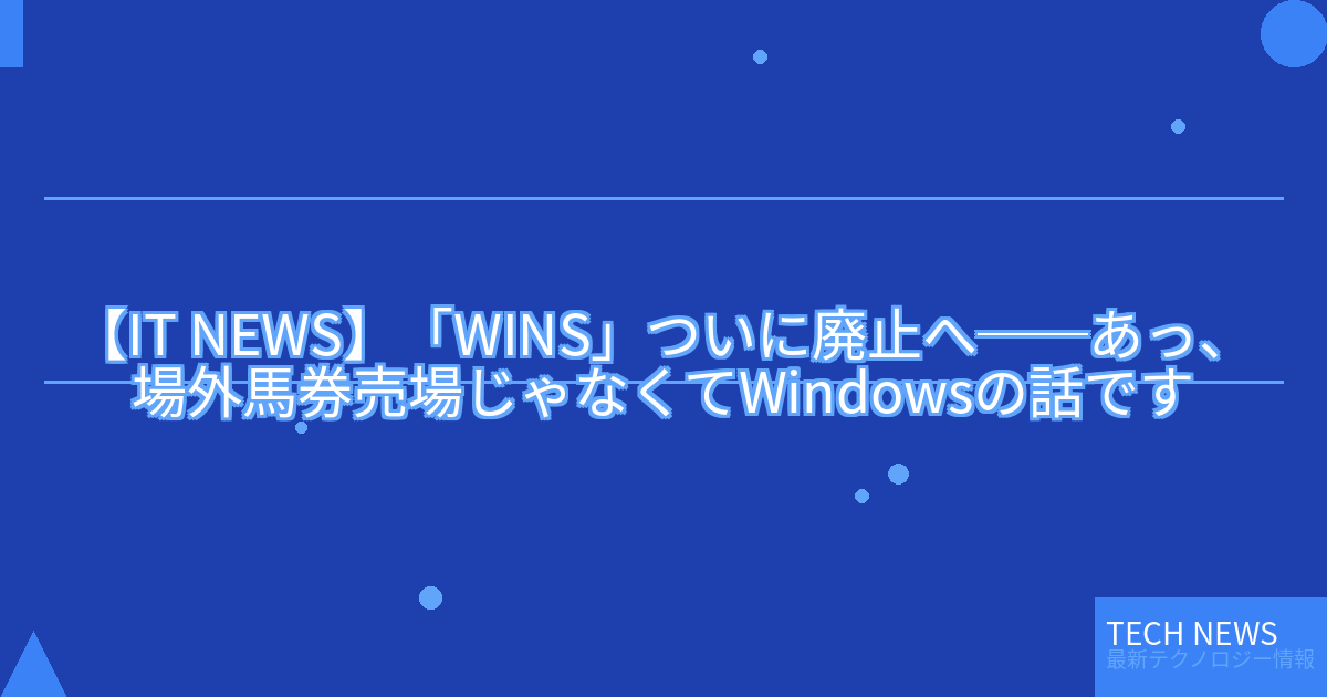 この度のニュースは、MicrosoftがWindows Internetsのサービス「WINS」を正式に削除フェーズに入ることを発表したものです。「WINS」はWindowsサーバーで提供されている名前解決サービスの一つで、主にローカルネットワーク内のコンピューター名を IP アドレスに変換する役割を果たしてきました。