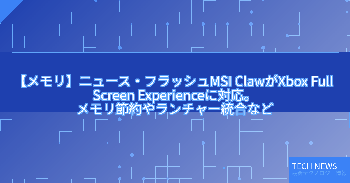 ・元記事タイトル:【ニュース・フラッシュ】MSI ClawがXbox Full Screen Experienceに対応。メモリ節約やランチャー統合など