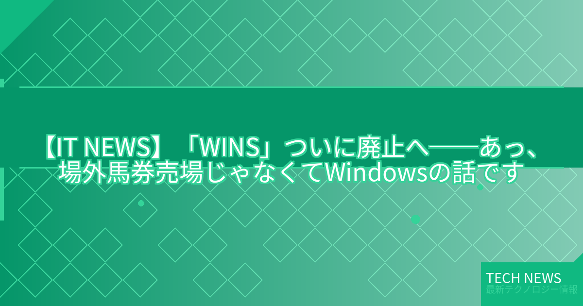 【IT NEWS】「WINS」ついに廃止へ──あっ、場外馬券売場じゃなくてWindowsの話です