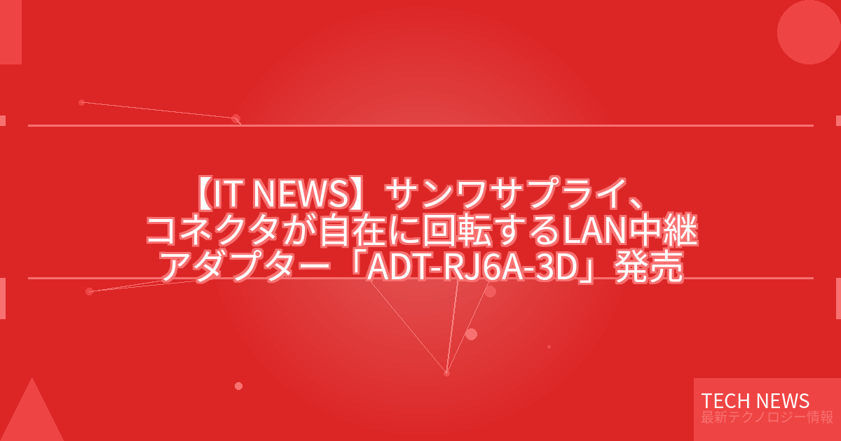 記事タイトル:サンワサプライ、コネクタが自在に回転するLAN中継アダプター「ADT-RJ6A-3D」発売