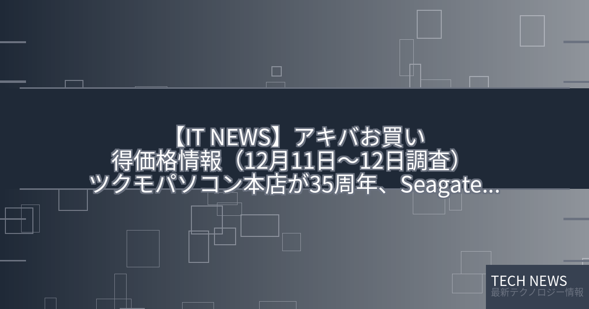 ・元記事タイトル:アキバお買い得価格情報(12月11日~12日調査) ツクモパソコン本店が35周年、Seagateイベント、GeForce RTX 4060 Ti 8GBが35,979円、Radeon RX 9070 XTが84,980円、イオシスのアウトレットセール ほか