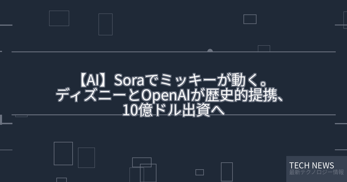 記事タイトル:Soraでミッキーが動く。ディズニーとOpenAIが歴史的提携、10億ドル出資へ