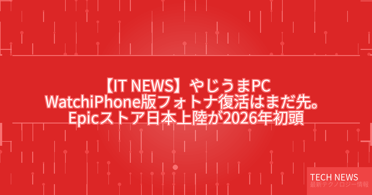 記事タイトル:【やじうまPC Watch】iPhone版フォトナ復活はまだ先。Epicストア日本上陸が2026年初頭