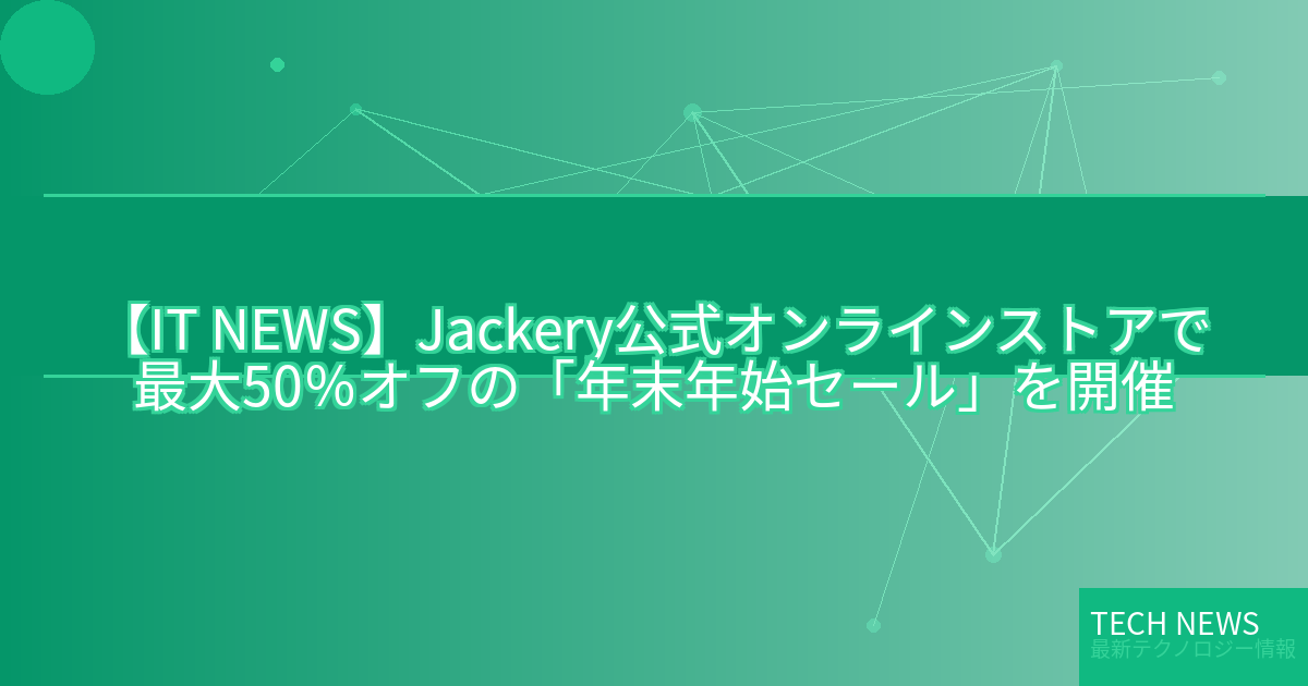 Jackery Japanは、12月22日より、公式オンラインストアにて最大50%OFFの「年末年始セール」を開催すると発表した。