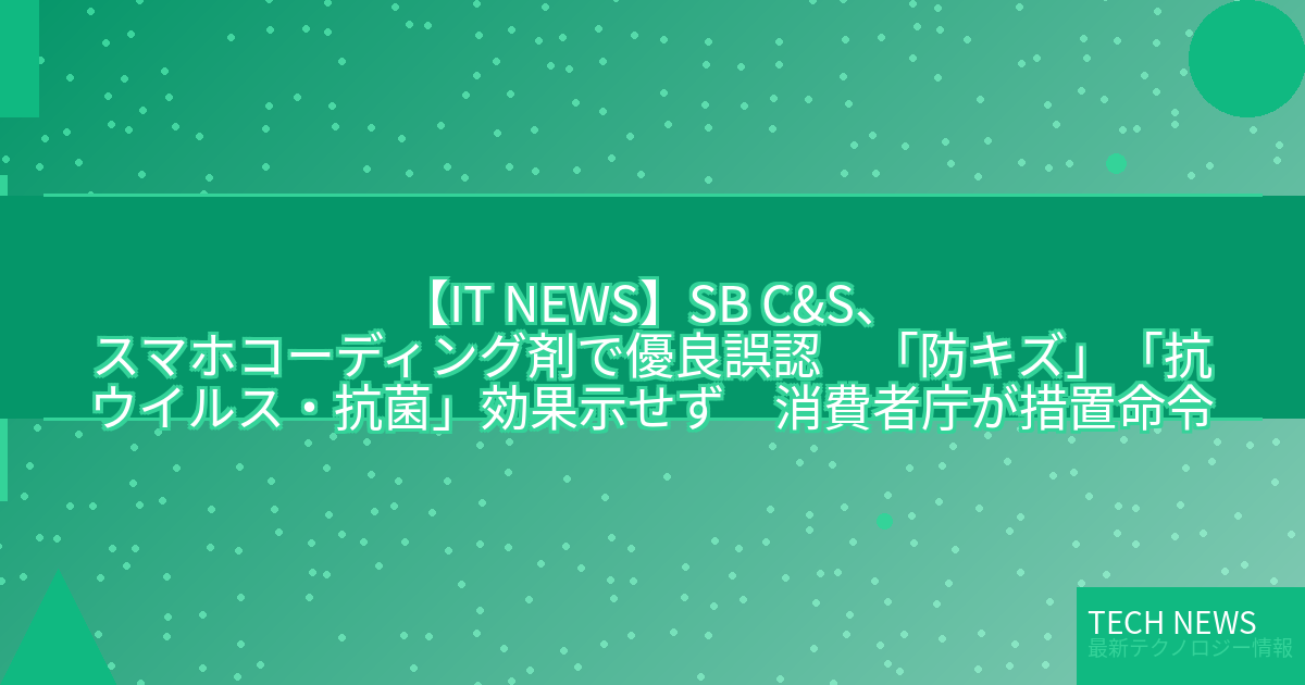 記事タイトル:SB C&S、スマホコーディング剤で優良誤認 「防キズ」「抗ウイルス・抗菌」効果示せず 消費者庁が措置命令