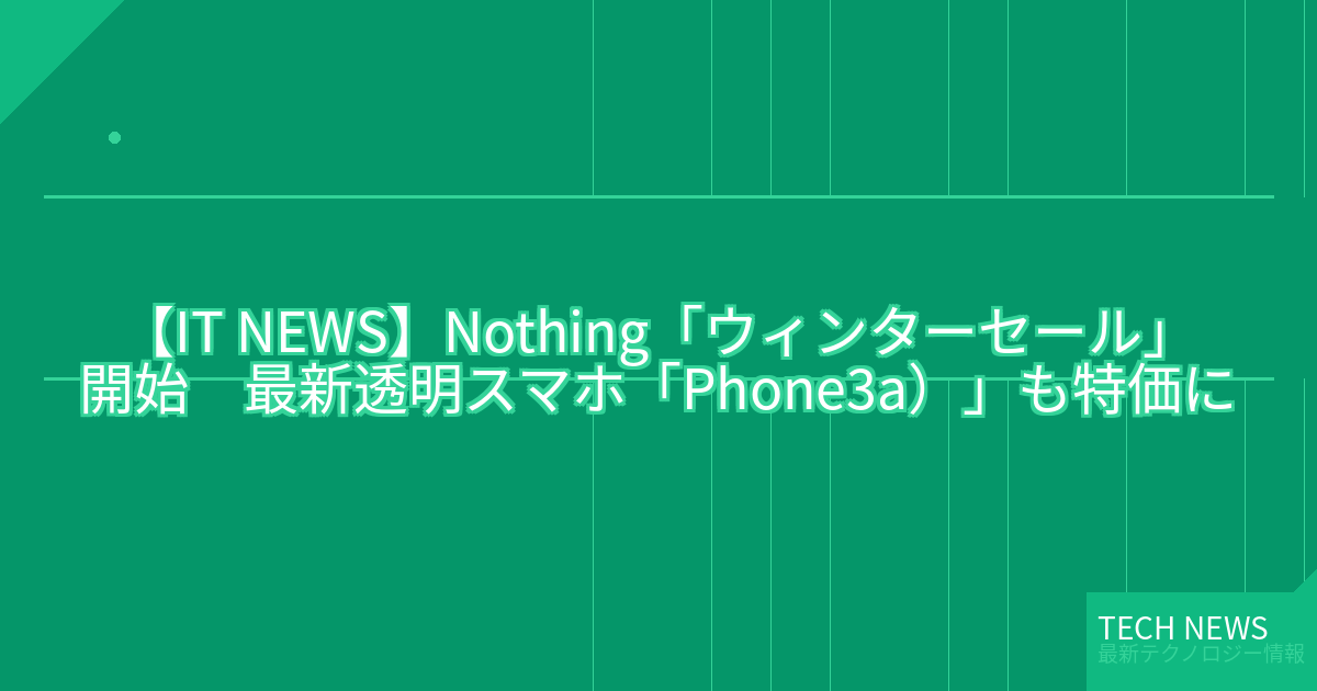 記事タイトル:Nothing「ウィンターセール」開始 最新透明スマホ「Phone(3a)」も特価に