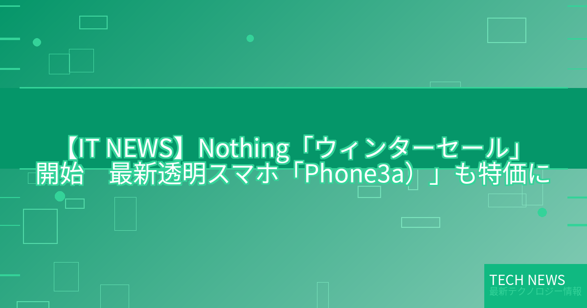 記事タイトル:Nothing「ウィンターセール」開始 最新透明スマホ「Phone(3a)」も特価に