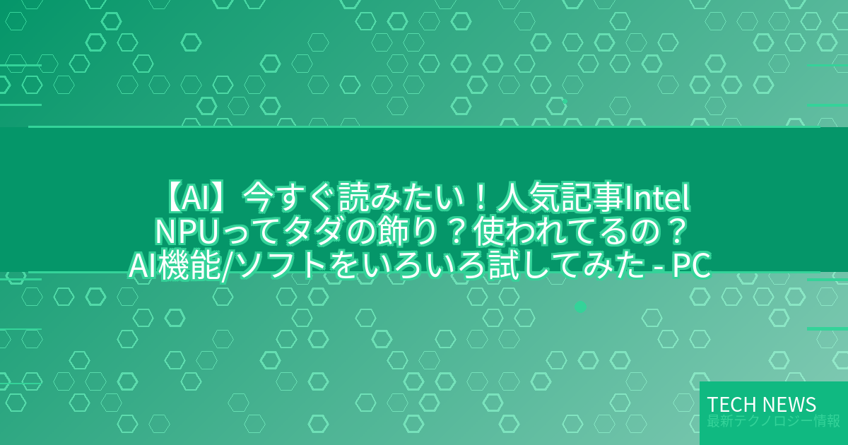 記事タイトル:【今すぐ読みたい!人気記事】Intel NPUってタダの飾り?使われてるの?AI機能/ソフトをいろいろ試してみた – PC Watch