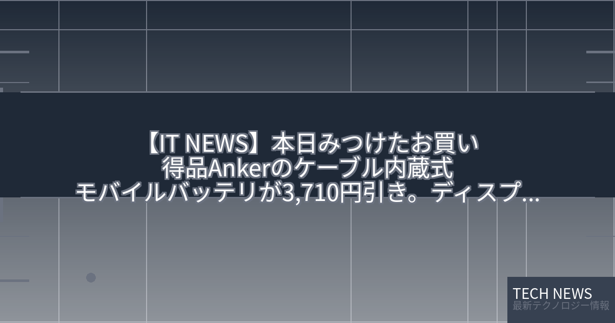 記事タイトル:【本日みつけたお買い得品】Ankerのケーブル内蔵式モバイルバッテリが3,710円引き。ディスプレイ付き