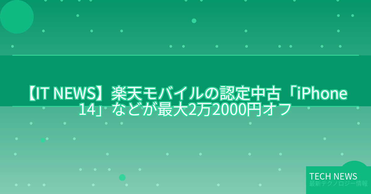 記事タイトル:楽天モバイルの認定中古「iPhone 14」などが最大2万2000円オフ
