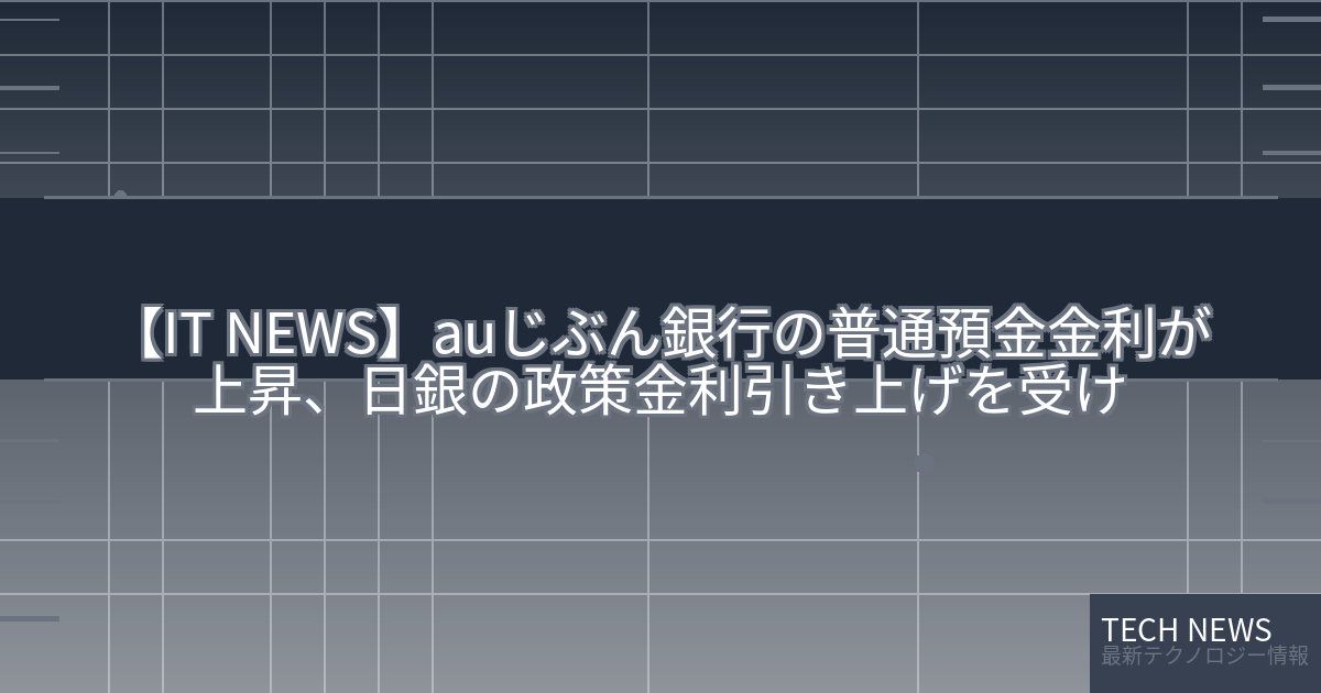 【IT NEWS】auじぶん銀行の普通預金金利が上昇、日銀の政策金利引き上げを受け