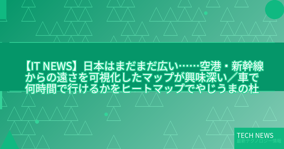 このニュースは、日本の地理的特性を可視化した興味深いマップを紹介しています。具体的には、空港や新幹線から各地域までの所要時間をヒートマップで表示したものです。これは、日本の広大な国土を視覚的に理解するのに役立つ技術といえます。