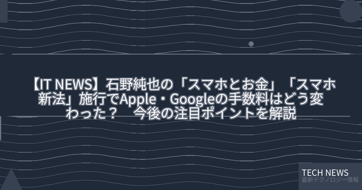 記事タイトル:[石野純也の「スマホとお金」]「スマホ新法」施行でApple・Googleの手数料はどう変わった? 今後の注目ポイントを解説