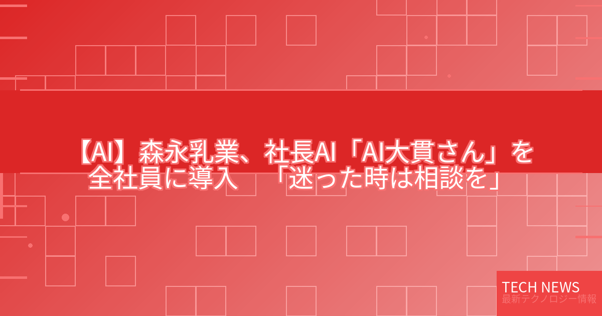 記事タイトル:森永乳業、社長AI「AI大貫さん」を全社員に導入 「迷った時は相談を」