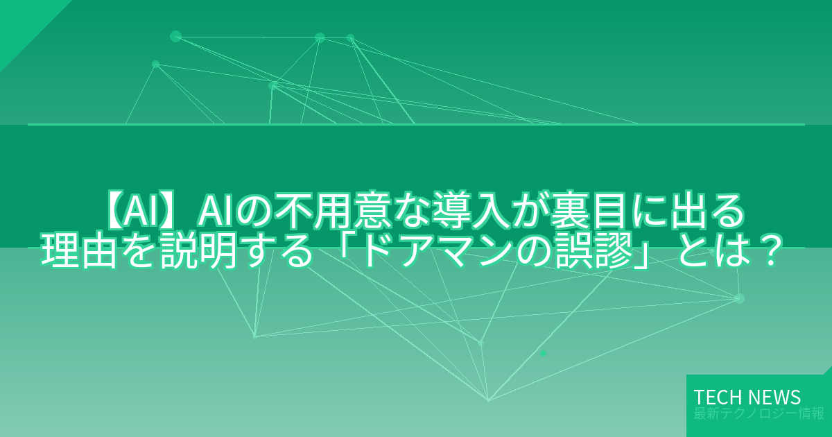 ・元記事タイトル:AIの不用意な導入が裏目に出る理由を説明する「ドアマンの誤謬」とは?