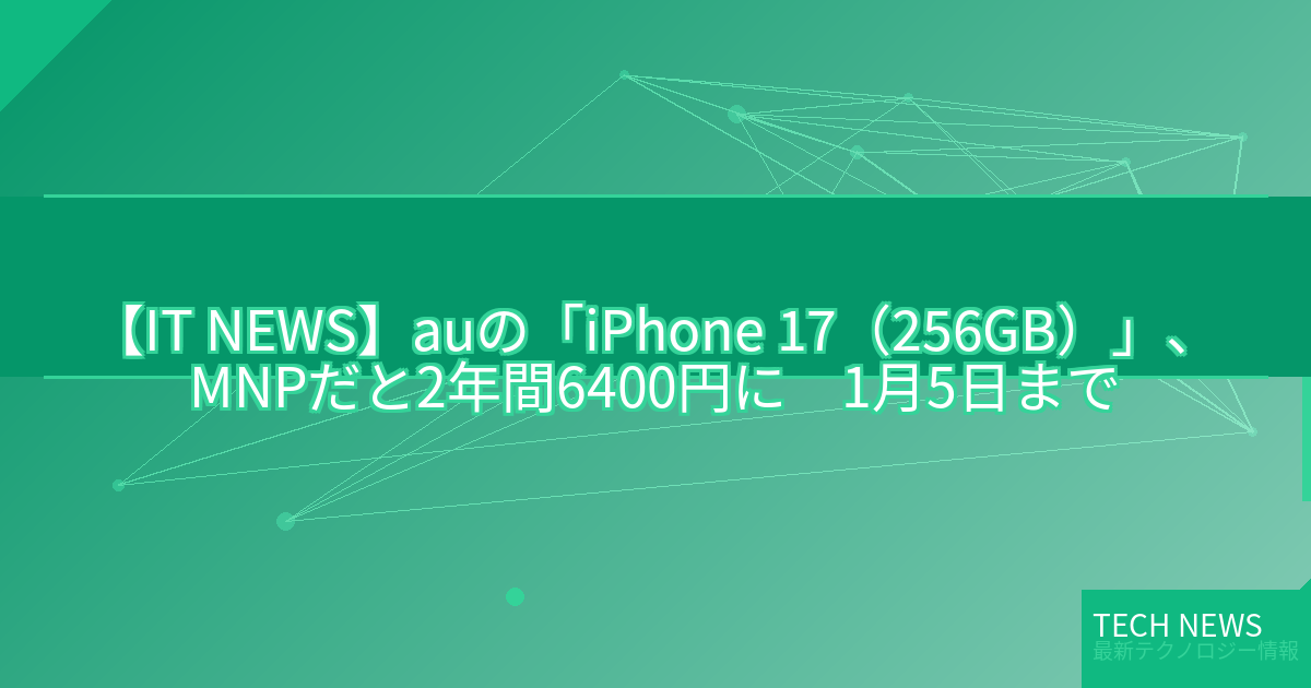 記事タイトル:auの「iPhone 17(256GB)」、MNPだと2年間6400円に 1月5日まで