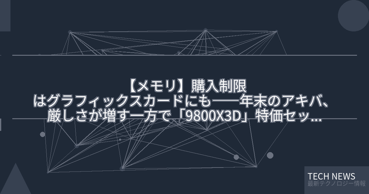 ・元記事タイトル:購入制限はグラフィックスカードにも――年末のアキバ、厳しさが増す一方で「9800X3D」特価セットが登場