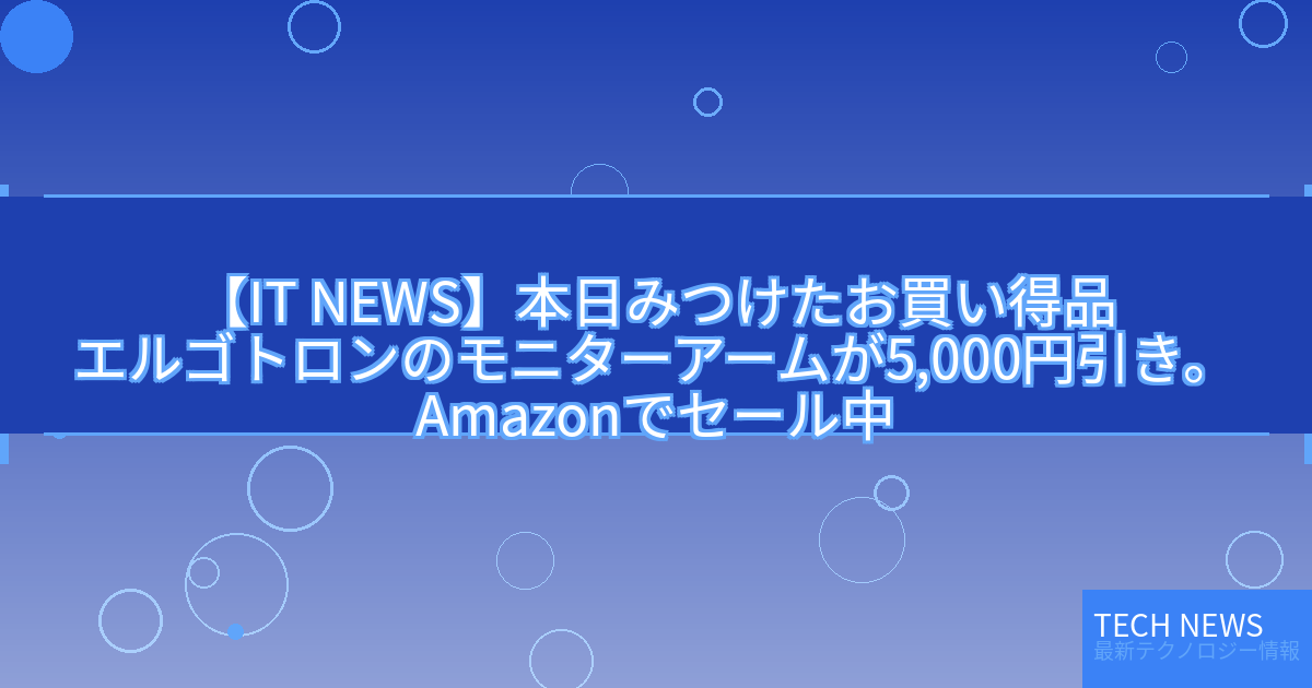 記事タイトル:【本日みつけたお買い得品】エルゴトロンのモニターアームが5,000円引き。Amazonでセール中
