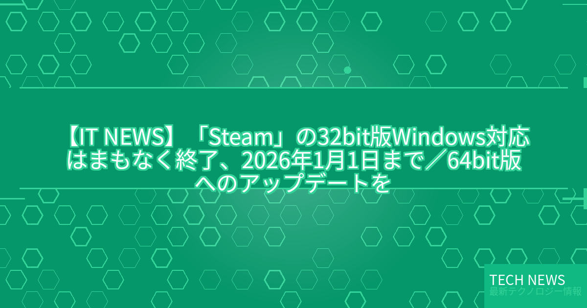 ・元記事タイトル:「Steam」の32bit版Windows対応はまもなく終了、2026年1月1日まで/64bit版へのアップデートを