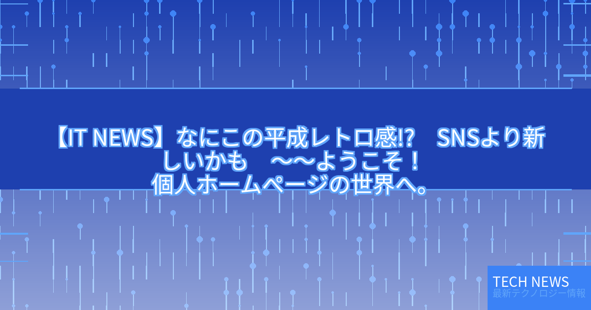・元記事タイトル:なにこの平成レトロ感!? SNSより新しいかも ~~ようこそ! 個人ホームぺージの世界へ。デザインの“お約束”教えます~~