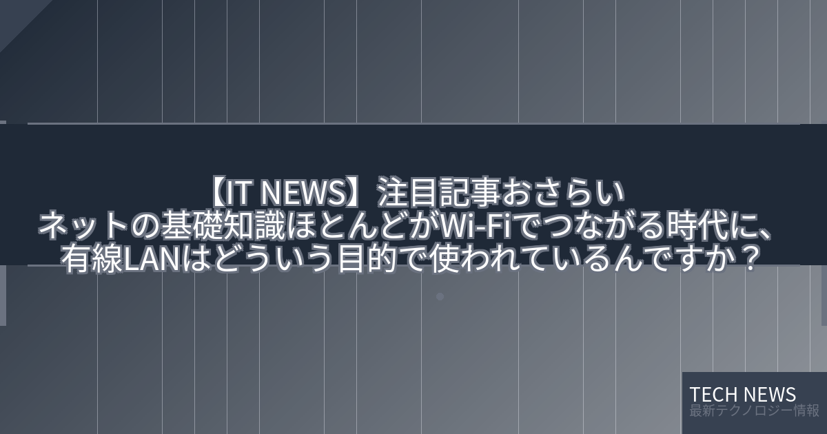 ・元記事タイトル:【注目記事】【おさらい ネットの基礎知識】ほとんどがWi-Fiでつながる時代に、有線LANはどういう目的で使われているんですか? 見かけないことも増えてきた有線LAN、IIJの専門家がこの疑問に答えてくれました