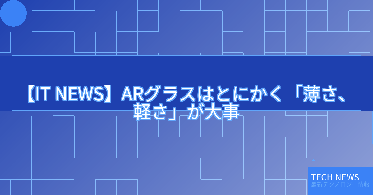 【IT NEWS】ARグラスはとにかく「薄さ、軽さ」が大事
