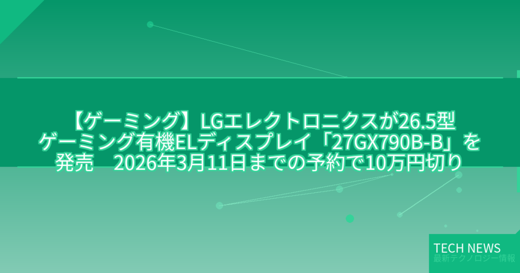 【ゲーミング】LGエレクトロニクスが26.5型ゲーミング有機ELディスプレイ「27GX790B-B」を発売 2026年3月11日までの予約で10万円切り