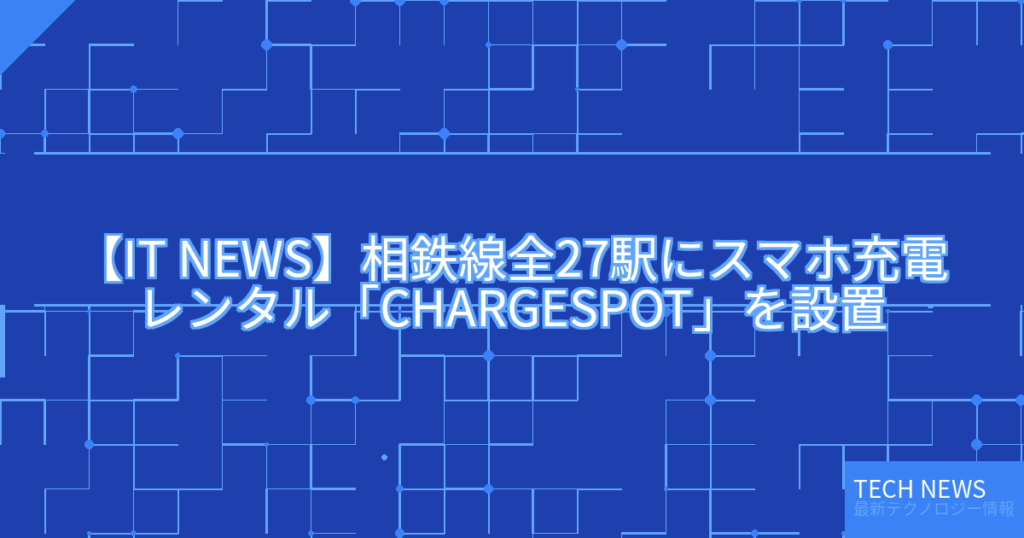 【IT NEWS】相鉄線全27駅にスマホ充電レンタル「CHARGESPOT」を設置