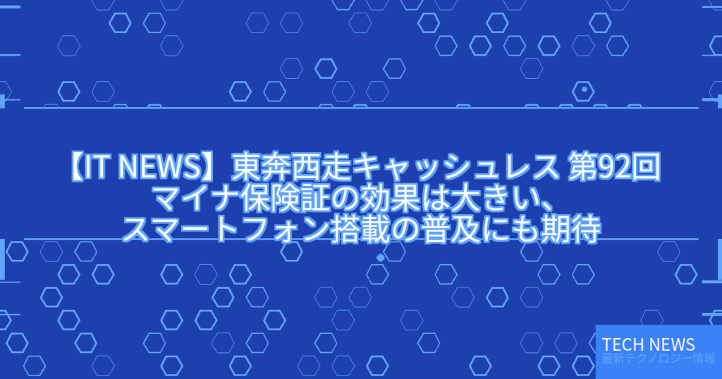 【IT NEWS】東奔西走キャッシュレス 第92回 マイナ保険証の効果は大きい、スマートフォン搭載の普及にも期待